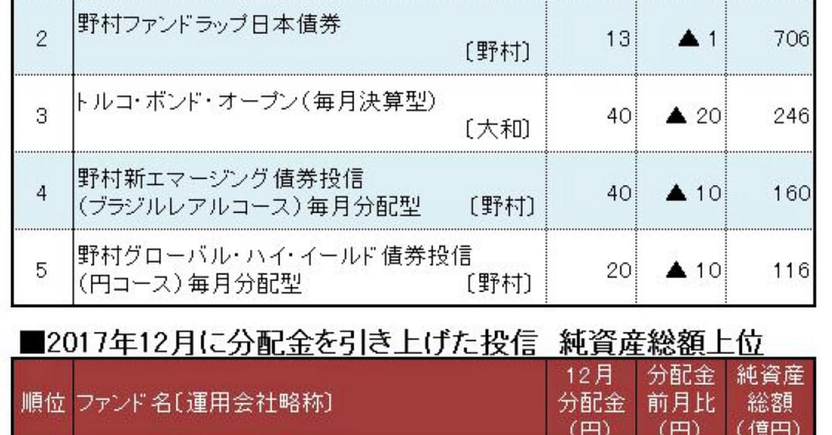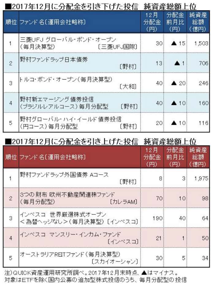 毎月分配型投信 28本が分配金を減額 17年12月 日本経済新聞