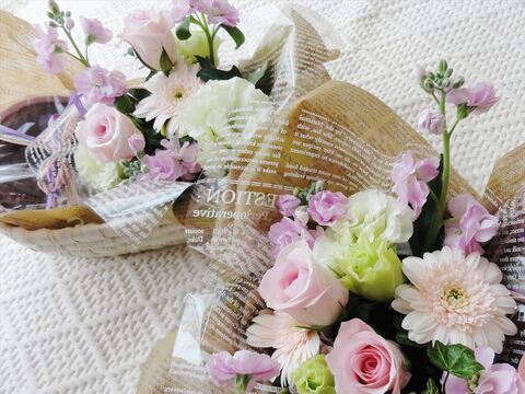 ダイソーの袋に花束を 100円ラッピング プチプラ花コーデ