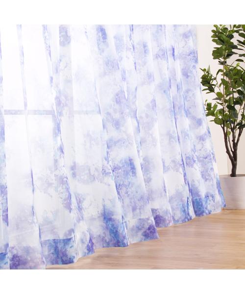 ヤフオク レースカーテン 花柄 青 ブルー 花 葉っぱ 自然