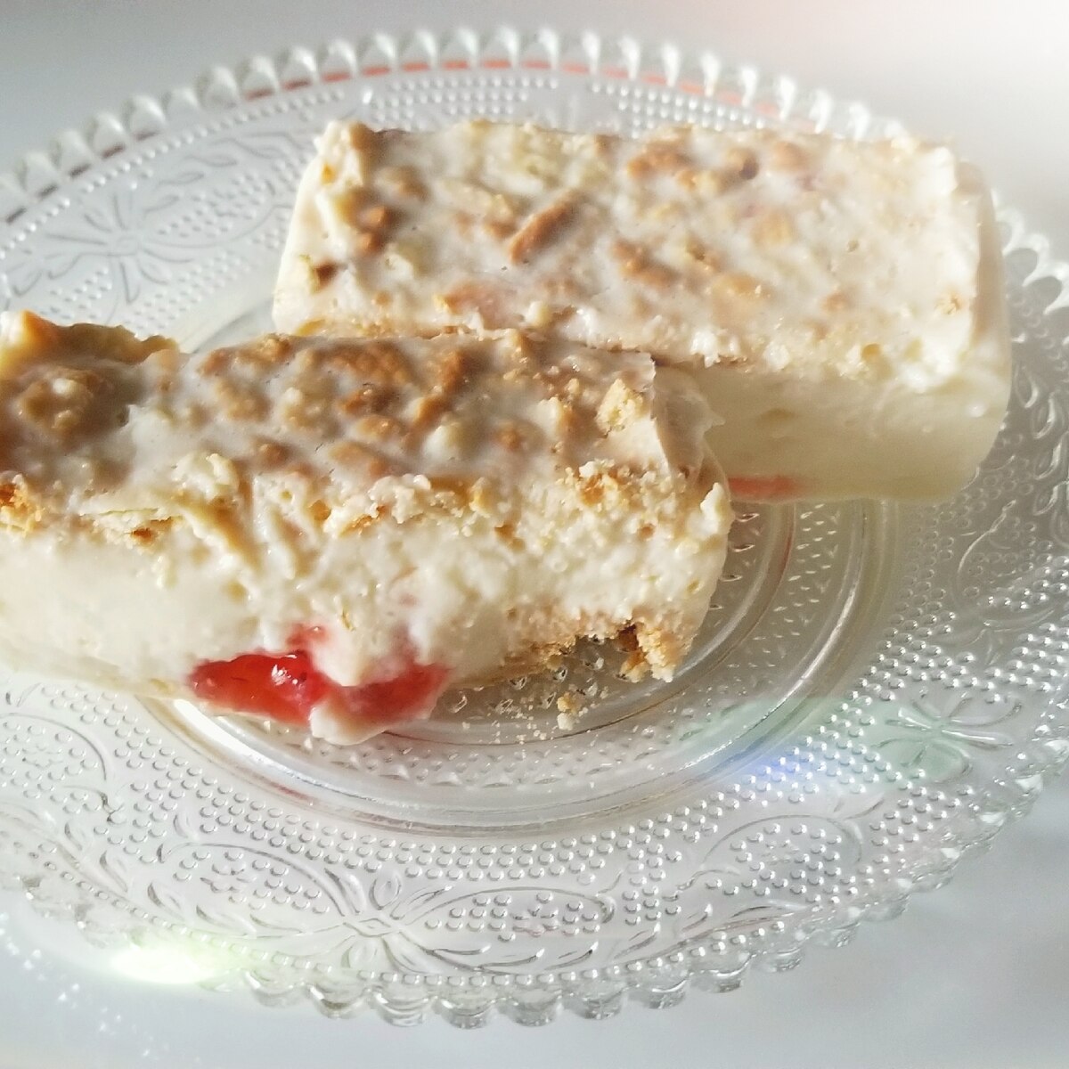 苺ジャムとクッキーを混ぜ込んだ激甘レアチーズケーキ レシピ 作り方 By Janbo 楽天レシピ