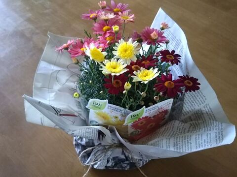 ポットのお花を簡単可愛くラッピング 暮らしニスタ