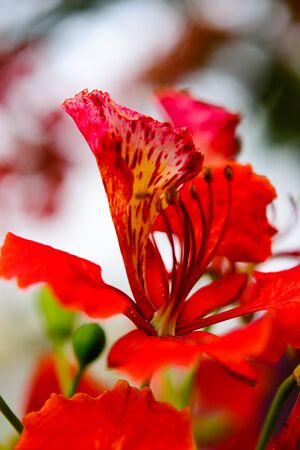 ツリー上の孔雀の花 木にオレンジ色の夏の花のセレクティブ フォーカス画像 の写真素材 画像素材 Image