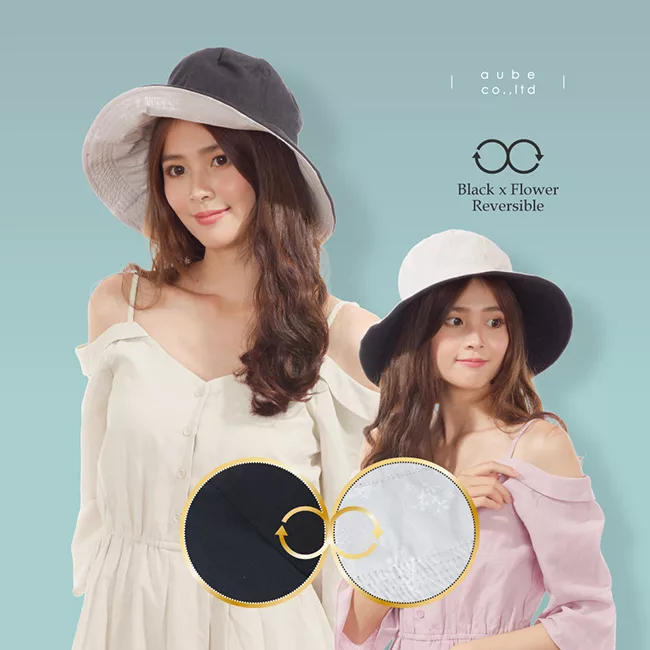 博客來 日本aube 雙面雙色可折疊抗uv遮陽帽 黑色 花柄