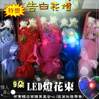 Wy禮品 贈品 盒裝小熊led花束燈9朵 情人節生日禮物花燈玫瑰花禮盒婚禮小物母親節活動七夕西洋 Yahoo奇摩拍賣