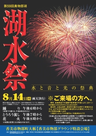 15年湖水祭 詳細と日程 花火 とうろう流し 踊りetc 高知の香美市の観光blog