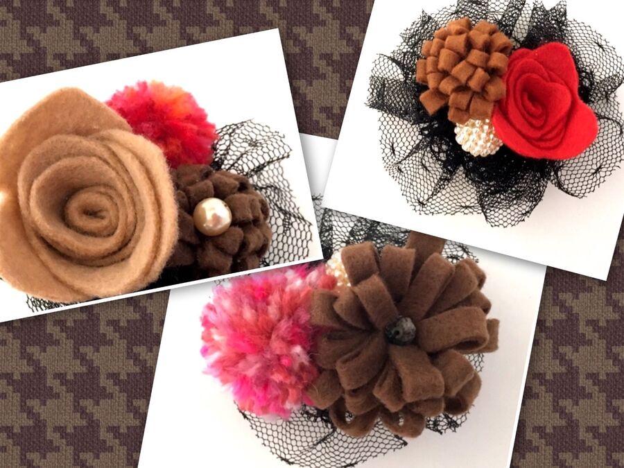ブローチがヘアゴムが選べる フェルトフラワーアレンジ五種類 ハンドメイドマーケット Minne