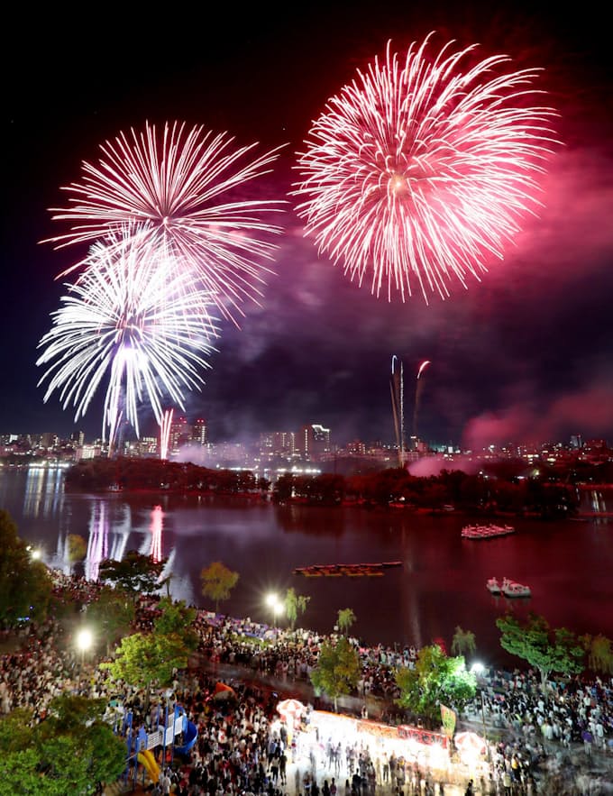 福岡の夏本番 大濠公園で花火大会 夜空彩る6000発 日本経済新聞