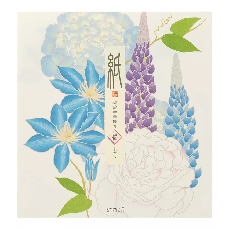 買い取り ネコポス メール 便可能 越前和紙封筒 夏の花柄 M在庫 2 D3 Midori 006 4柄8枚入 クレマチスや芍薬柄 のはなやかな封筒 6冊までネコポス便可能