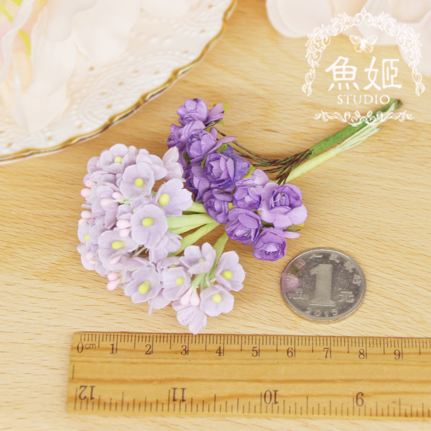 Diy仿真迷你手工梅花花仙子淺紫香芋色紙花婚慶裝飾胸頭花配件1cm