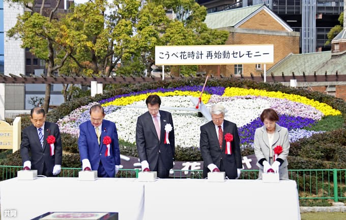 神戸の花時計再始動 4カ月ぶりに時刻む 日本経済新聞