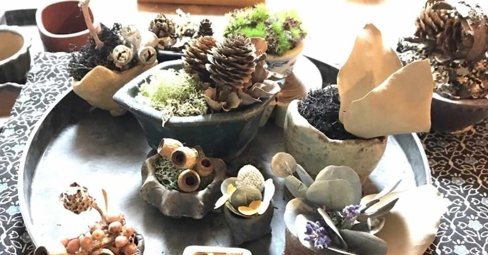 Tabicaレポート 小さなアトリエで超ミニ盆栽風アレンジ作り 山下展子 てんちゃん Note