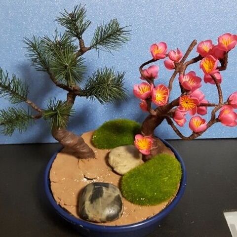 正月用の松の寄せ植えミニ盆栽を100均の松と梅の造花を使って作りました 暮らしニスタ