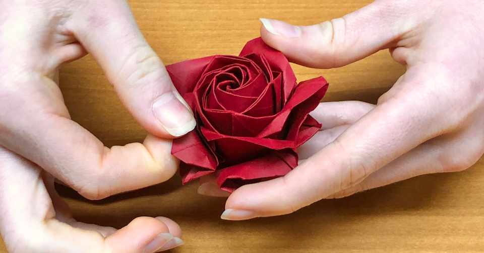 彩雲紙で折る 青いハイブリッドティーローズ おうち時間にバラ折り紙を まさにぃの折り紙コラム