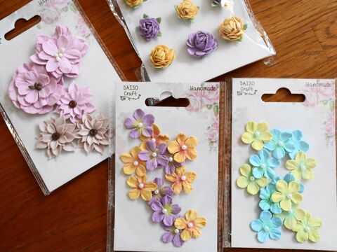 ハンドメイドに使える ほっこりコットン 100均ショップセリアの フラワーパーツパール付3p 他 100均で節約生活